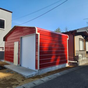白河市西郷で施工致しましたカリフォルニアガレージですが、見た目は派手で、個性的な感じに仕上がっています!
